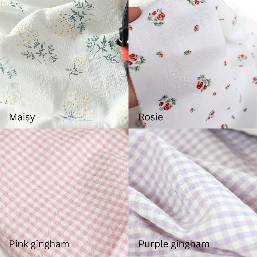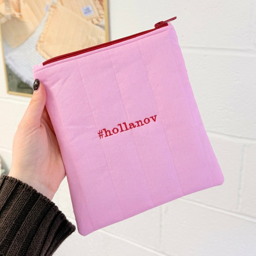 Example case features Bubblegum cotton, Deep Red lining and number 2 thread colour.